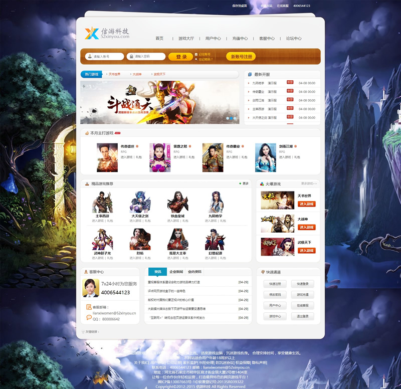 信游页游平台应用版是一个以.net+mssql进行开发的页游平台系统。软件功能介绍:游戏管理对网页游戏、游戏服务器的添加、编辑。设置游戏页面工具条的样式,设置游戏接口参数,连接游戏到平台。设定游戏充值时使用的充值方式。以及游戏礼包的导入、查看礼包的领取情况系统。