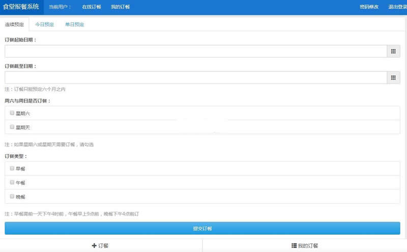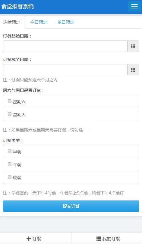 学校网上订餐预约系统是一个为中学食堂报餐的系统,采用了BS架构开发,利用.NET技术和sqlserver数据库进行系统的开发。兼容 手机和web浏览器。由于采用B/S模式,订餐者无须安装第三方软件,能上网就能订餐,甚至可以利用手机上网订餐,使操作更加简便,订餐信息更加准确。本系统实现了智能订餐,方便顾客的使用,同时便于管理员的管理,节省了员工的时间和精力,也避免了食堂食物的浪费。提高了学校食堂的工作效率,优化了学校食堂的管理。
