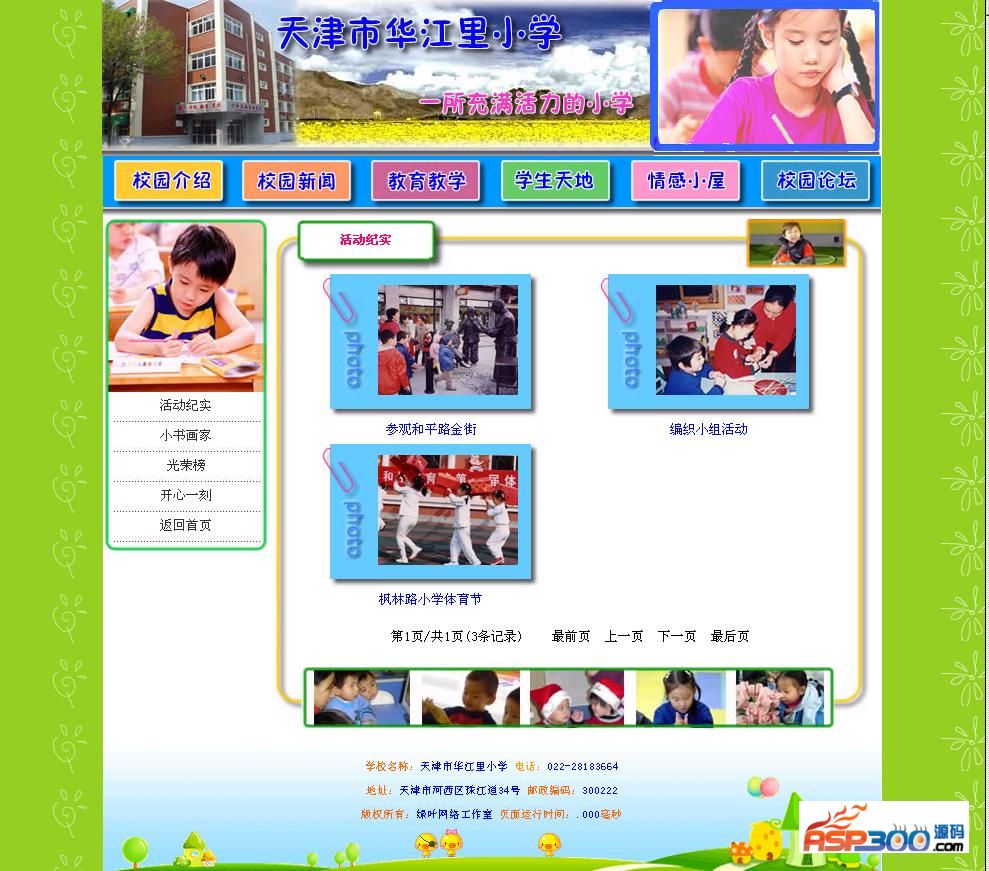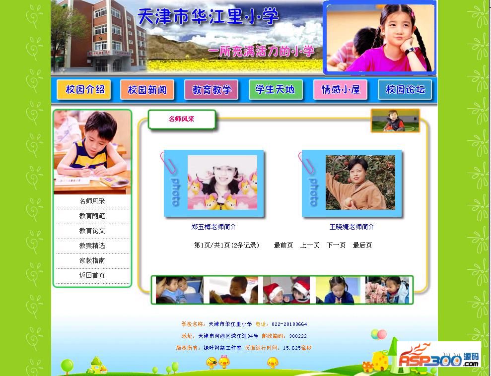 4、修改了“名师风采”、“活动纪实”、“小书画家”等栏目分页显示不正常的现象