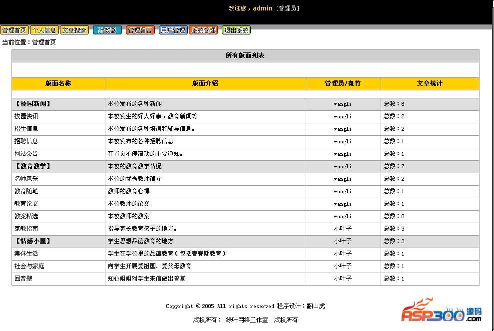 2、本软件功能强大,操作简单。可以发布首页图片新闻、普通新闻、图片新闻、小游戏等,还可以更改学校名称、地址、电话等。对于发布的新闻,可以审核,待审的新闻在后台可以看到,前台(访问者)却看不到。修改新闻时,可以更改文字的字体、大小、颜色,还可以在文章中插入新闻图片。