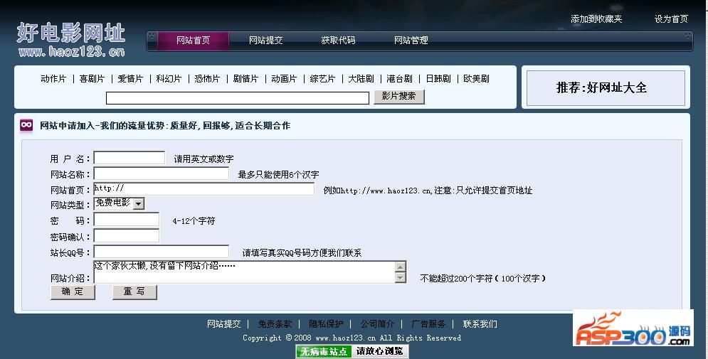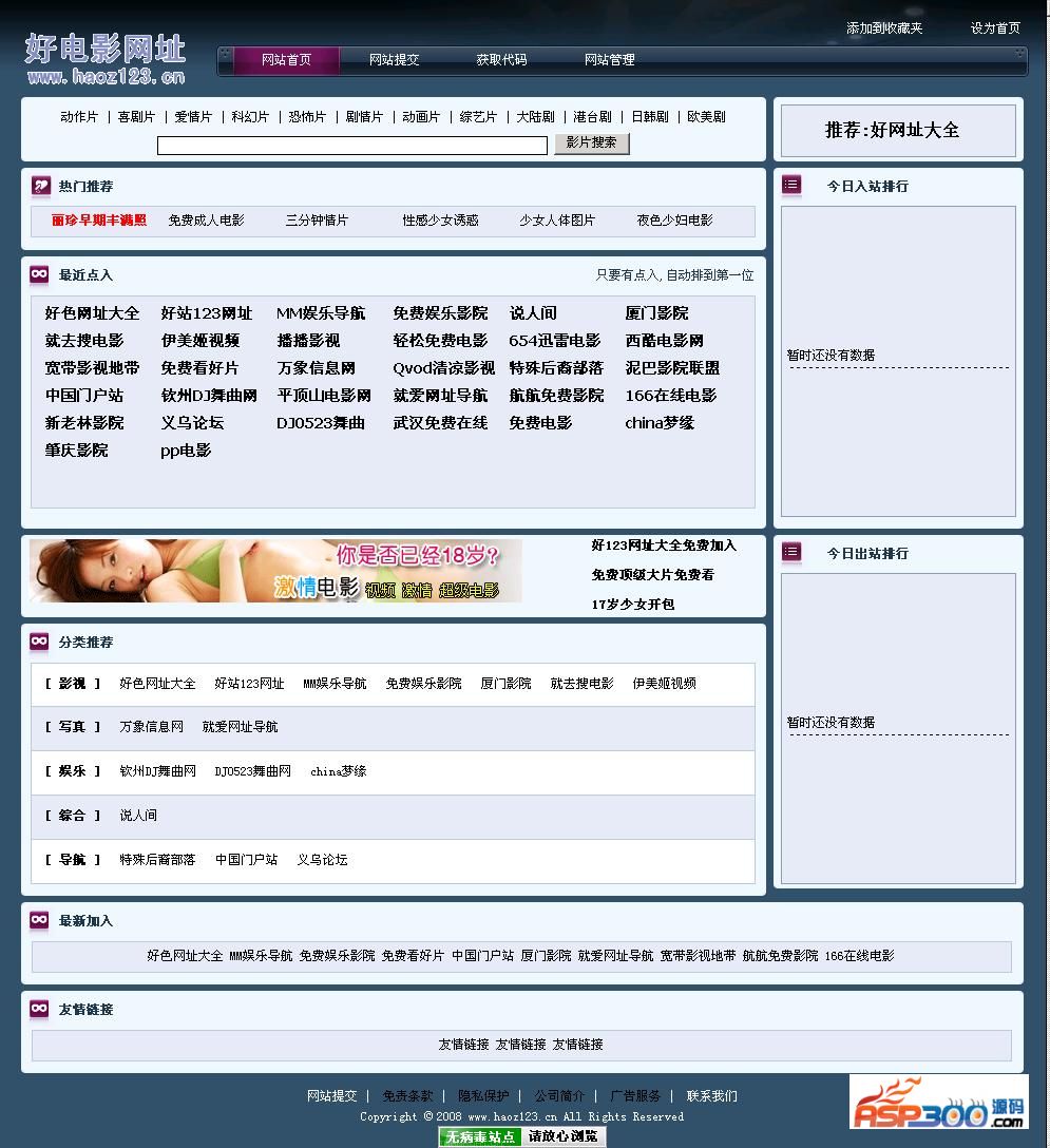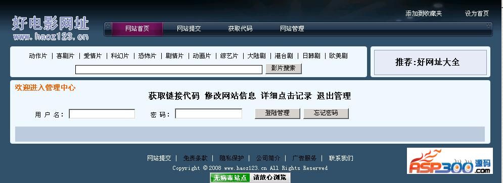 5、支持外部JS调用,这样就方便了站长们在自己的网站首页显示特定(如推荐)的网站了。