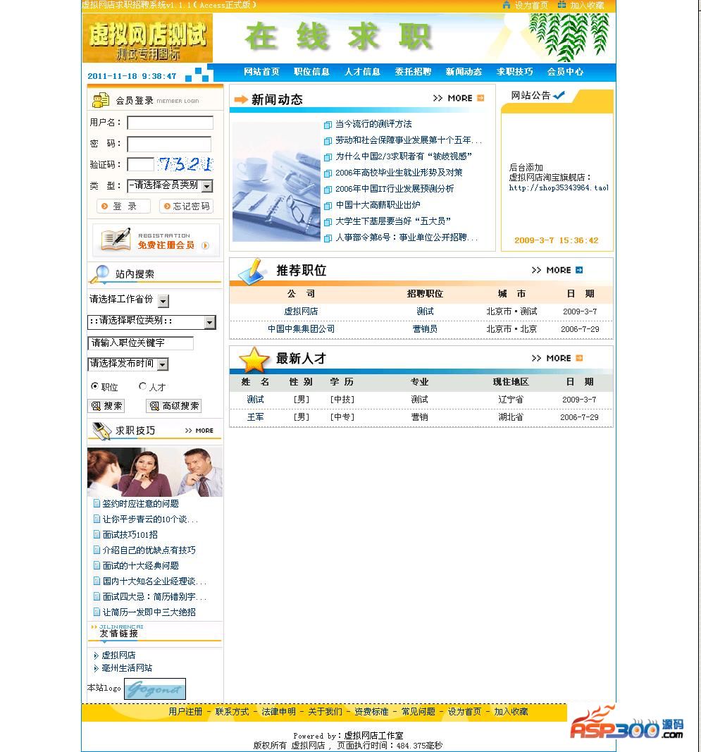 4、强大的用户互动功能:支持个人职位库、企业人才库、站内短信(支持后台群发)、人才\职位高级搜索