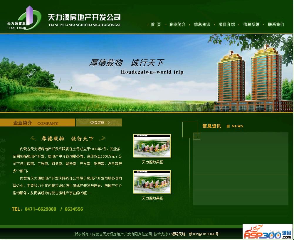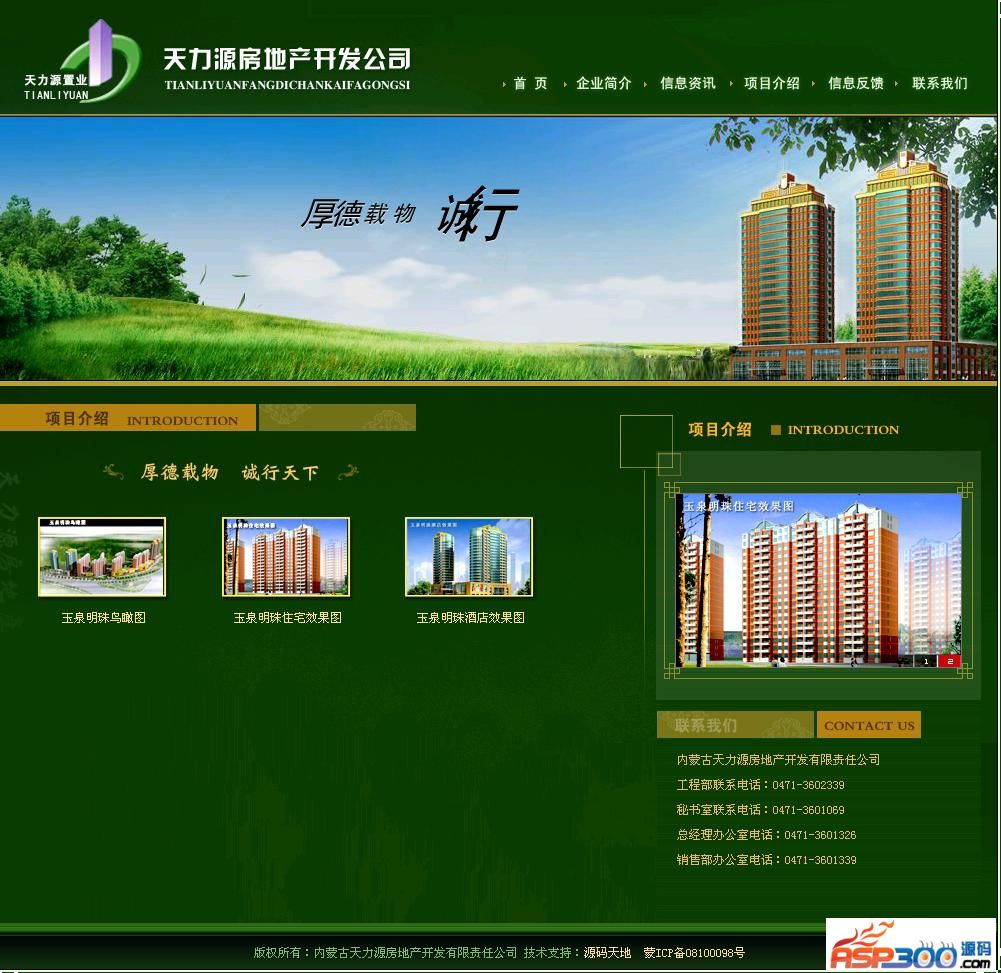 房地产开发公司网站源代码 墨绿色风格