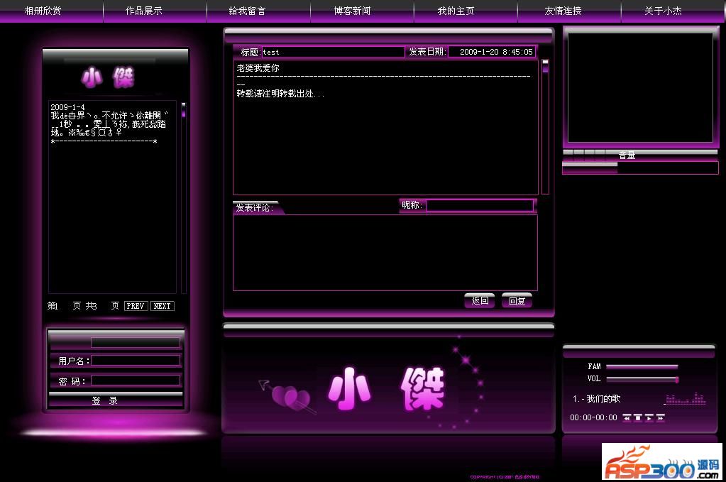 本人觉得后台不完善,于是在后台增加了音乐,MTV,相册友情连接完善了这个FLASH程序。