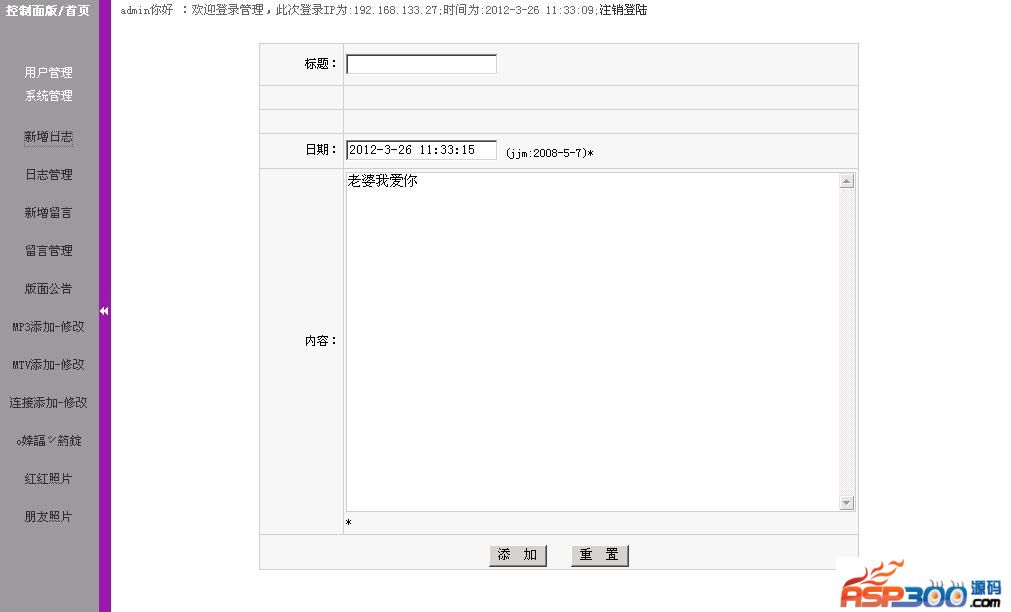 原FLASH的后台只有“新增日志 日志管理 新增留言 留言管理 版面公告”