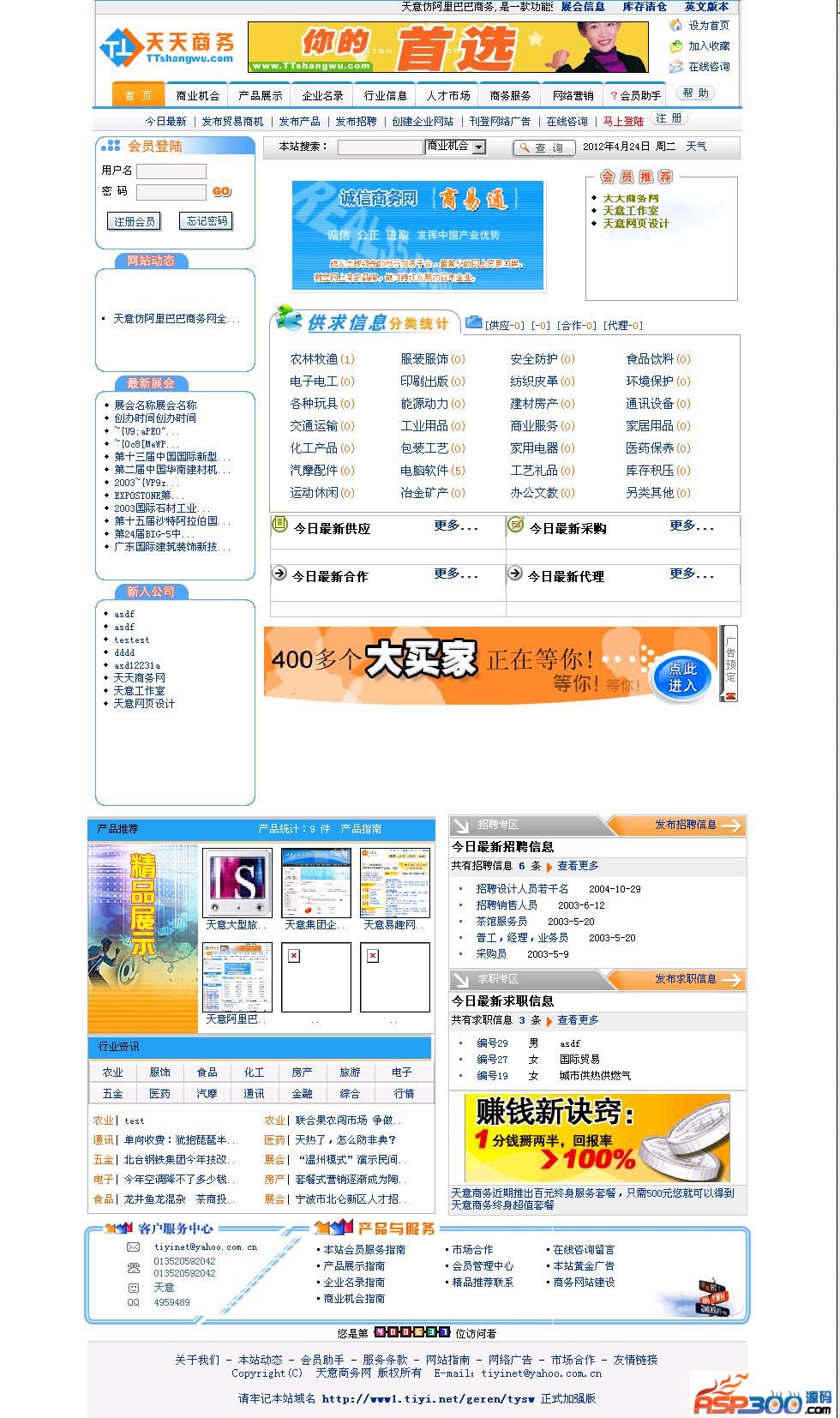 1、网页首页显示有高级会员推荐,精品推荐,商业机会分类列表,最新供求信息,网站动态,推荐企业,行业动态等;
