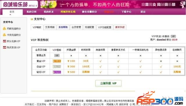 7、积分兑换VIP功能,积分兑换VIP很利于前期人气推广,盈利模式非常清晰;