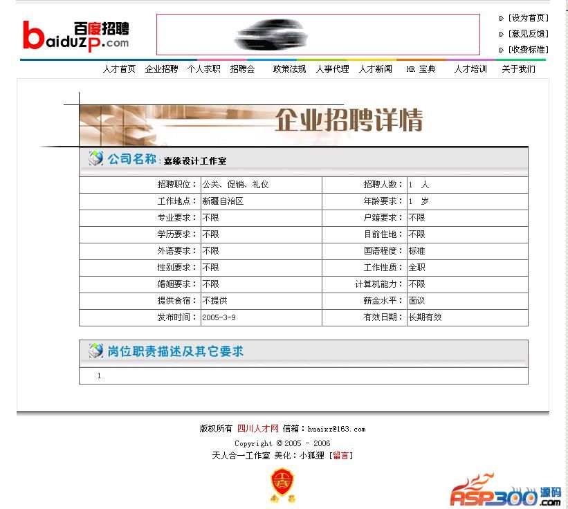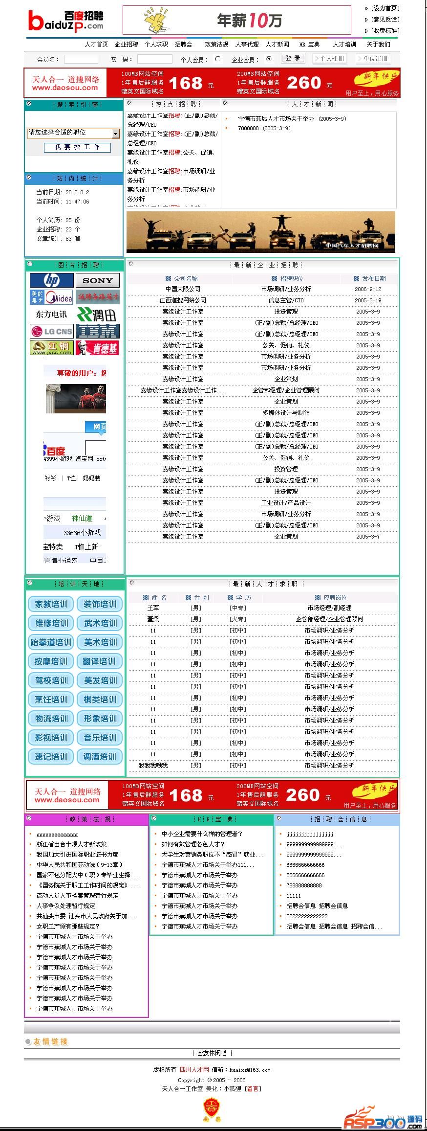 欢迎您使用地方人才门户网代码,适合做行业性人才网,也可以做地方性人才门户站,目前主要功能有: