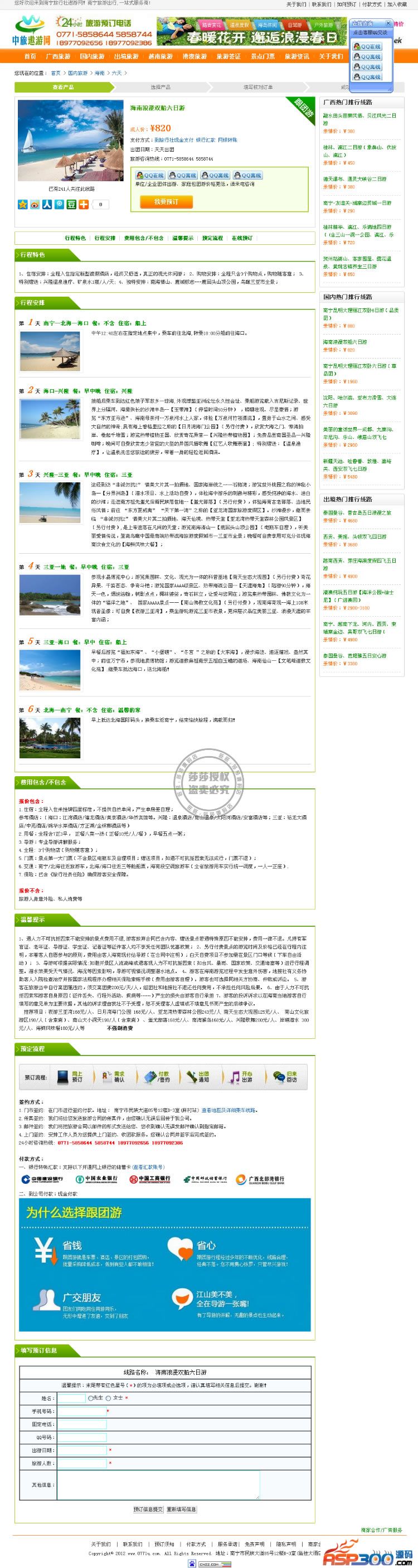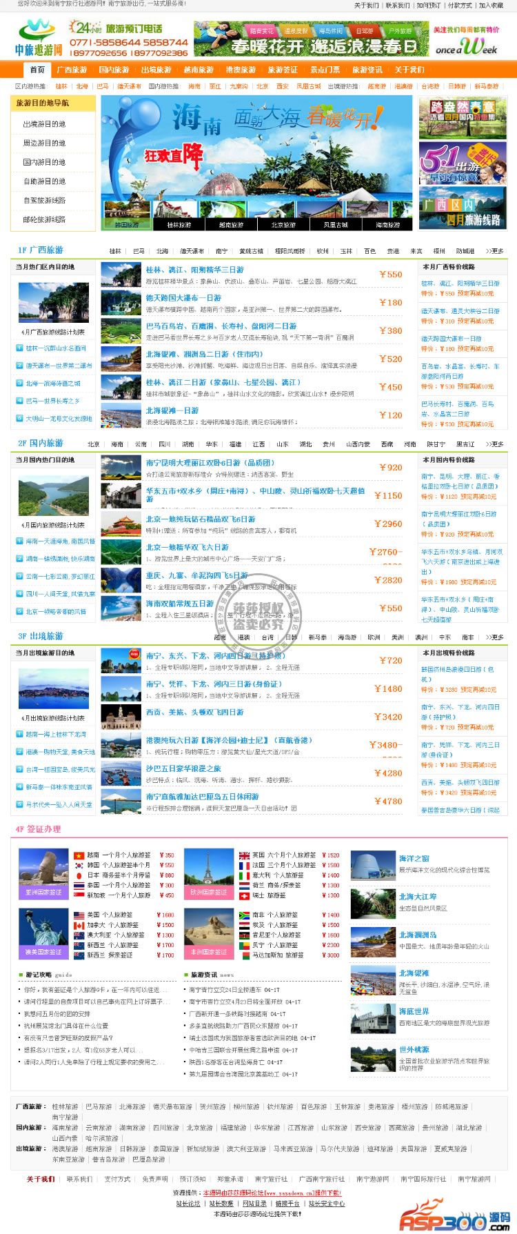 其他说明:中旅遨游网模板,非常好的一款旅游在线预订系统,程序的内容包含非常全面。支持在线提交预订旅游日程等,后台均可查询,选择此款程序,如果经营得当,你一定能赚得满钵金银!