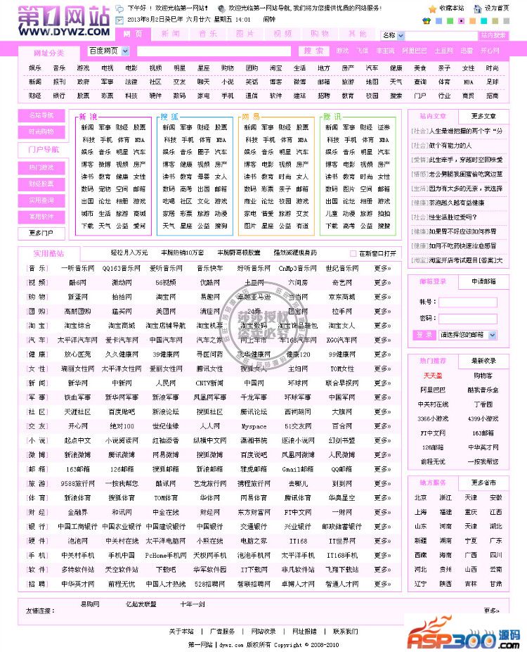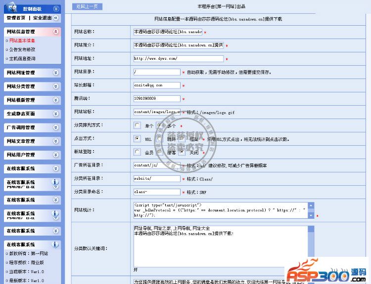源码说明:第一网站程序商业版,全站生成html静态页面(不但减轻服务器的负载而且更利于搜索引擎收录),麻雀虽小,五脏俱全,还带文章发布系统!非常有特色,前台颜色可以随意换。
