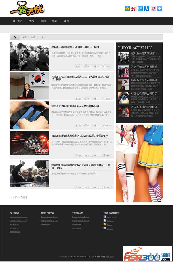 模板分为头部、底部、主页、文章列表页、文章内容页、图集列表页和图集内容页。