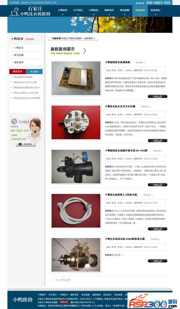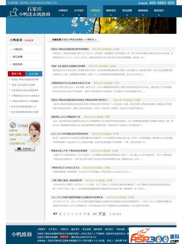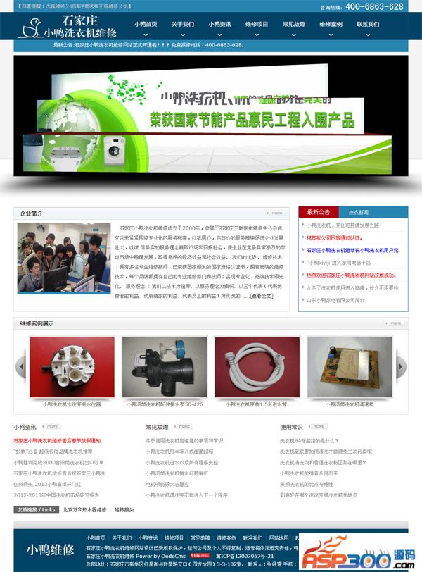 洗衣机维修网站源码 蓝色风格企业站php源码