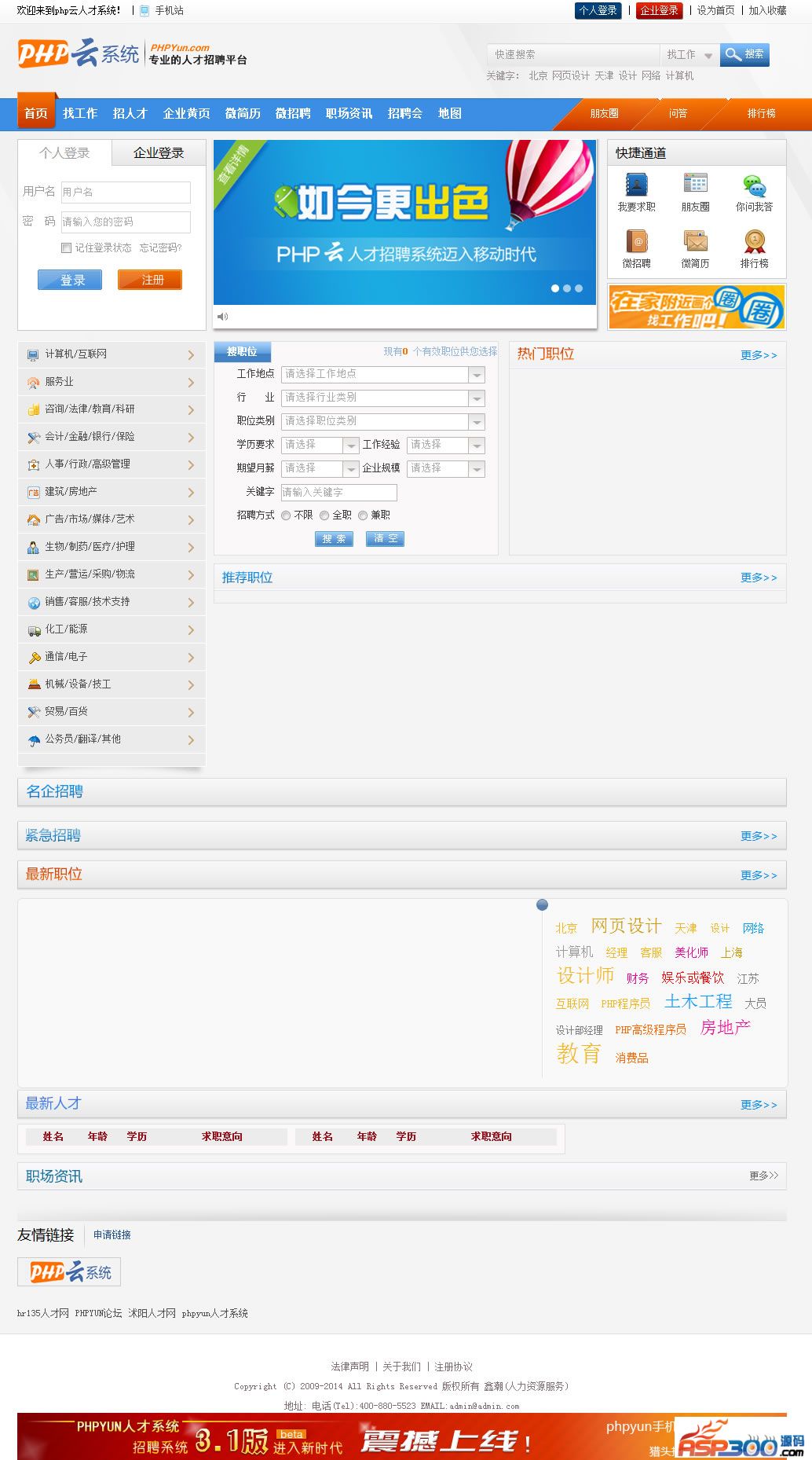 PHP云人才招聘系统之前咱们这里分享了套beta版本,今天这里分享的是正式商业版,具体有什么变化请自行下载测试。