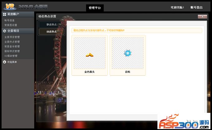 全景通提供数套热点样式,同时支持自己上传热点样式。