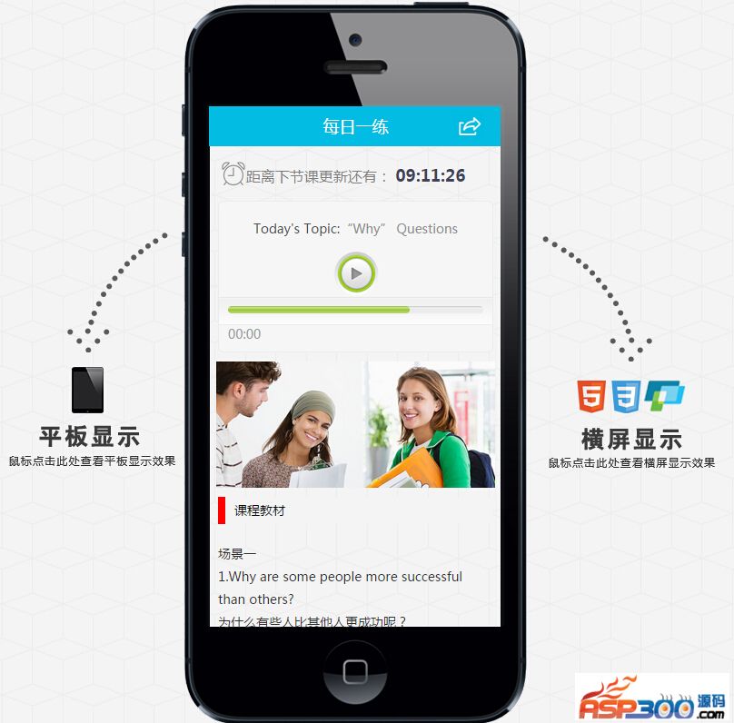 蓝色的英语学习手机触屏网站模板,仅包含一个静态页面! 本模板实用于手机、平板等移动终端,只含HTML文件,不包含后台,请悉知! 下载地址 下载地址已转移到新版网站,请点击左上角-首页,在新版网站搜索此套源码的标题进行下载。