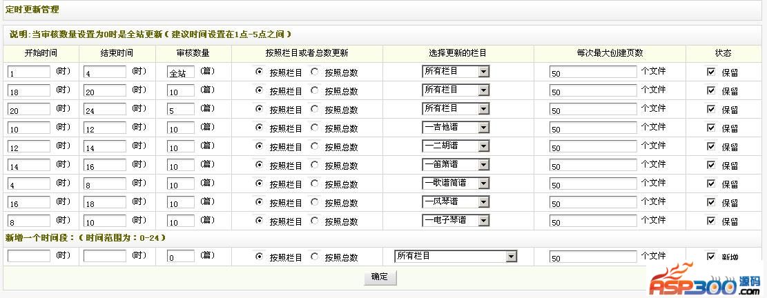 6、 附加功能:全站更新,添加一个时间段,设置审核数量为0时,将进行全站更新