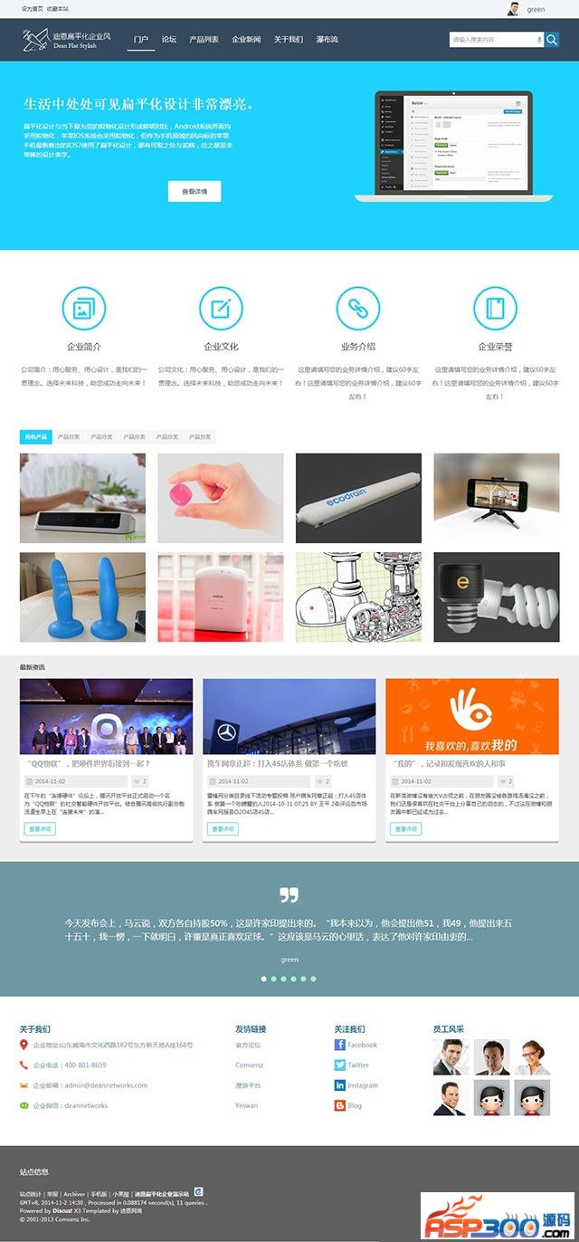 Discuz迪恩科技最新corp扁平化企业模板商业版 扁平设计+html5+简约大气+价值268元,可以说是非常漂亮的一套discuz企业模板!