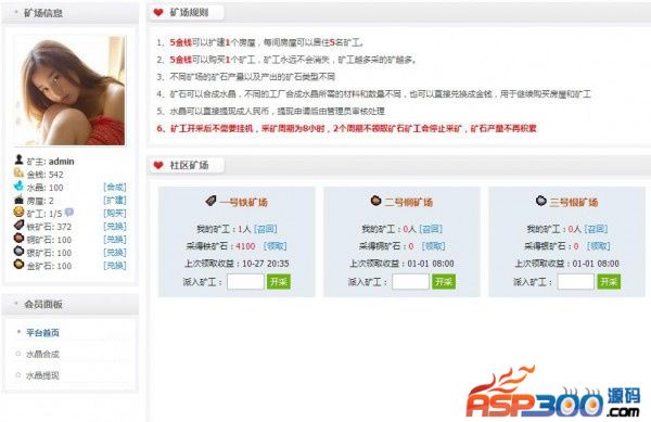 14.支持后台自定义矿场规则、水晶合成说明、扩建房屋的说明、购买矿工的说明、出售矿石的说明、水晶提现的说明