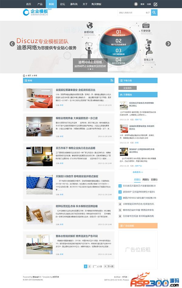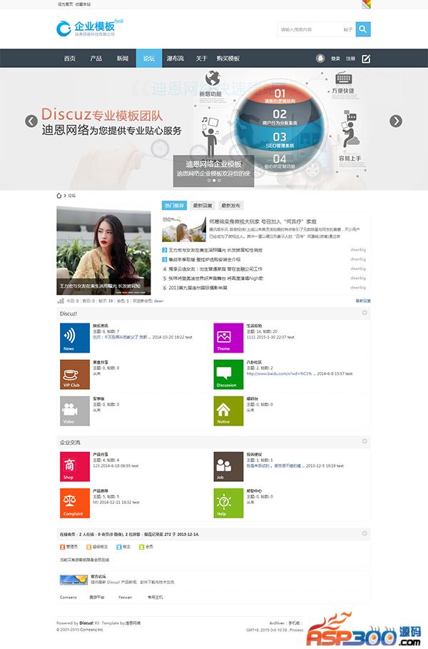 1.模板名称:迪恩网络多配色win8企业风格",版本支持:discuzx3.0版本,discuzx3.1版本,包括网站首页,产品列表页,新闻资讯页面,以及新闻产品内容页面,关于我们页面,论坛首页,论坛列表页,论坛内容页,论坛瀑布流页面等。