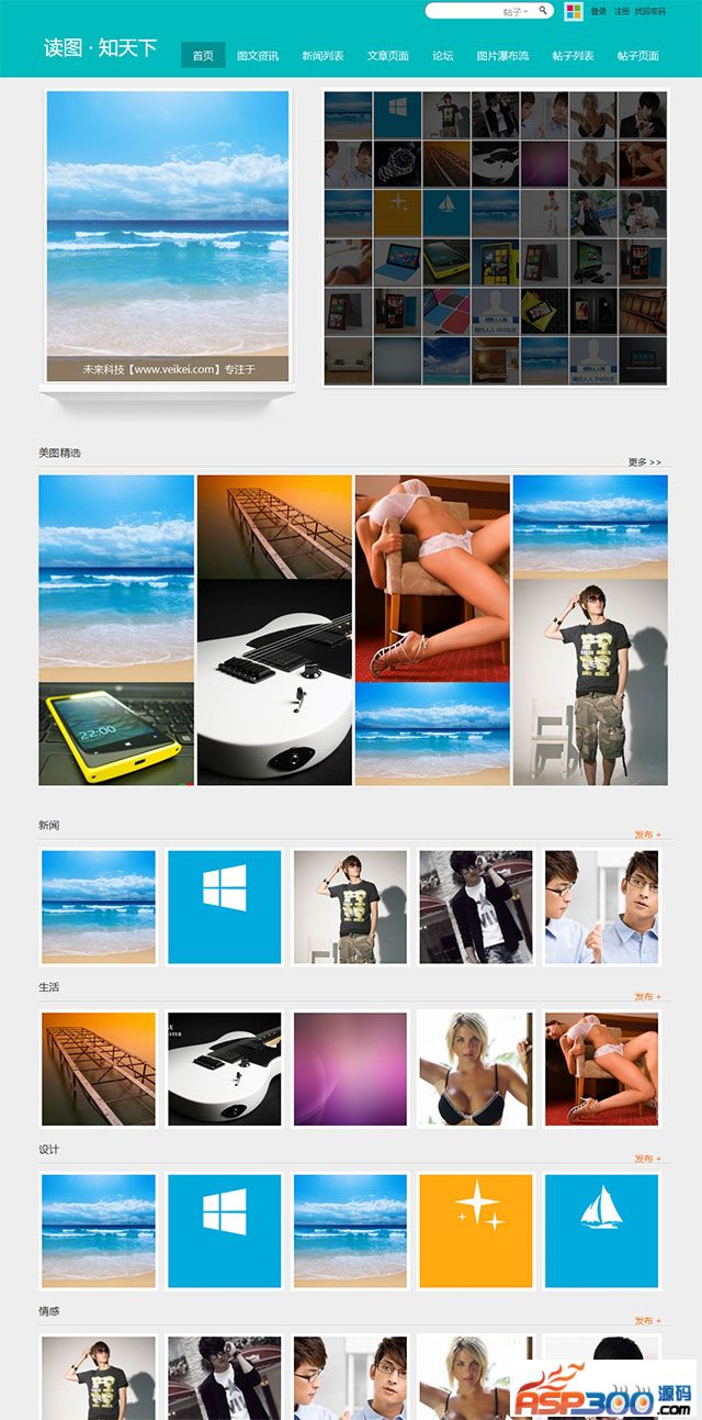 2、【图片支持瀑布流】【帖子列表页】、内容页【社交化】【简洁化】、同时完美支持【瀑布流】。