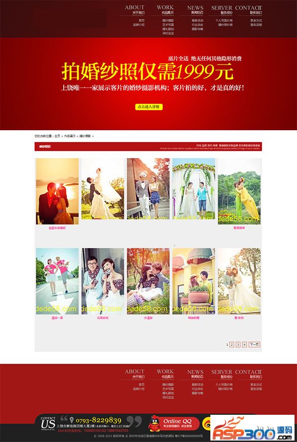 红色喜庆婚纱摄影网站源码 织梦源码之婚庆服务模板