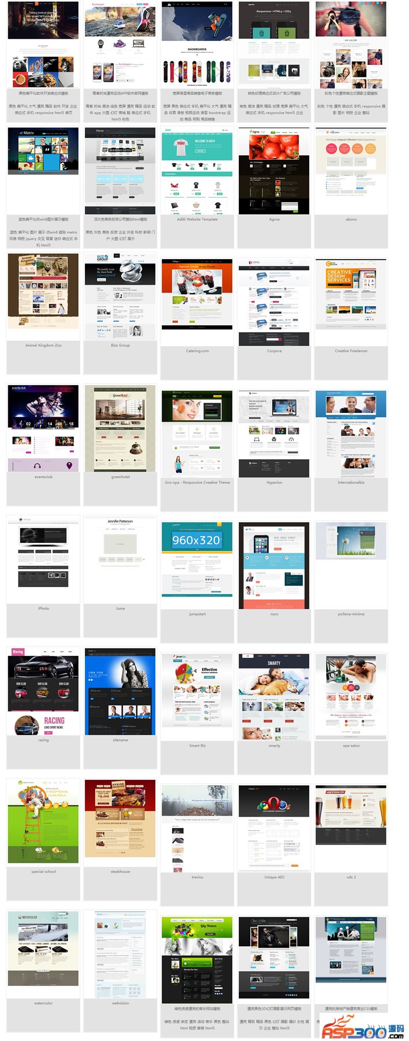模板包含多款Html5、响应式模板,
