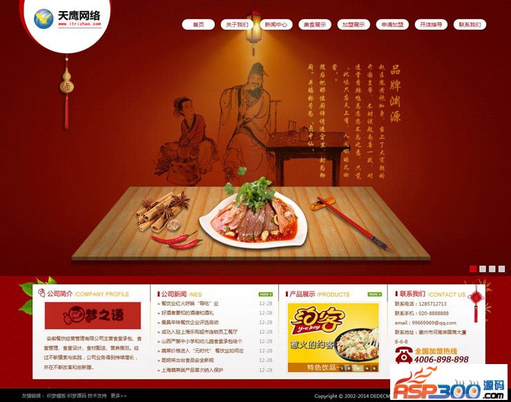 红色中式餐饮饮食食品类网站源码模板