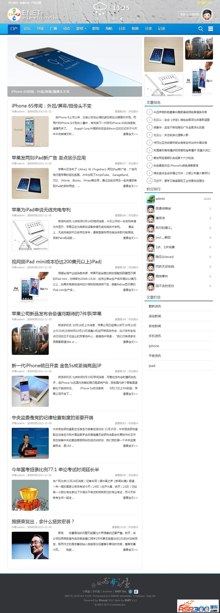 蓝色清爽discuz门户论坛模板 ENET新锐版