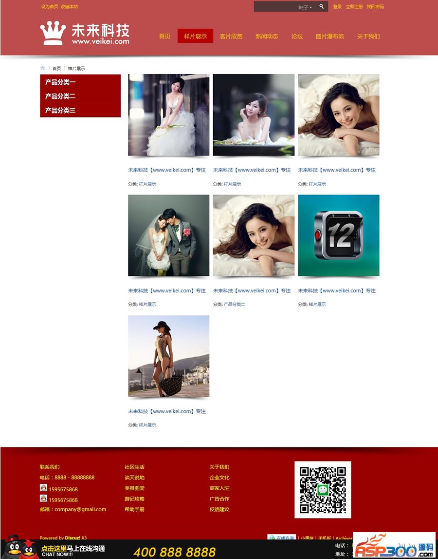 13、产品展示【列表页侧边栏 后台自主选择】 —— “3列图片带侧边栏”或“4列图片无侧边栏”显示样式。