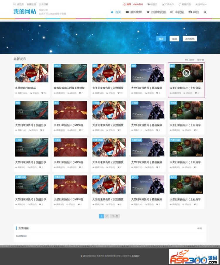 帝国cms内核Html5响应式在线视频网站源码。整合CKPLAYER,支持的MP4+FLV格式。适合做视频播放和下载站点,默认可以播放优酷土豆腾讯等视频站点的视频(通用播放分享代码,非解析!),集成 CKPLAYER播放器,可以上传和外链自己的MP4、FLV格式的影片!自带帝国播放和下载权限,可以游客,普通用户,普通注册用户扣点和VIP包月包 年等权限播放和下载!自动响应各种平板手机移动设备!到手即可开站!