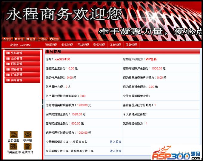 强大的会员网络管理系统 推广注册赚钱源码完美运营版 支持店铺 26套前台模板 运行环境: php5.2/5.3/5.4+Mysql 下载地址 下载地址已转移到新版网站,请点击左上角-首页,在新版网站搜索此套源码的标题进行下载。