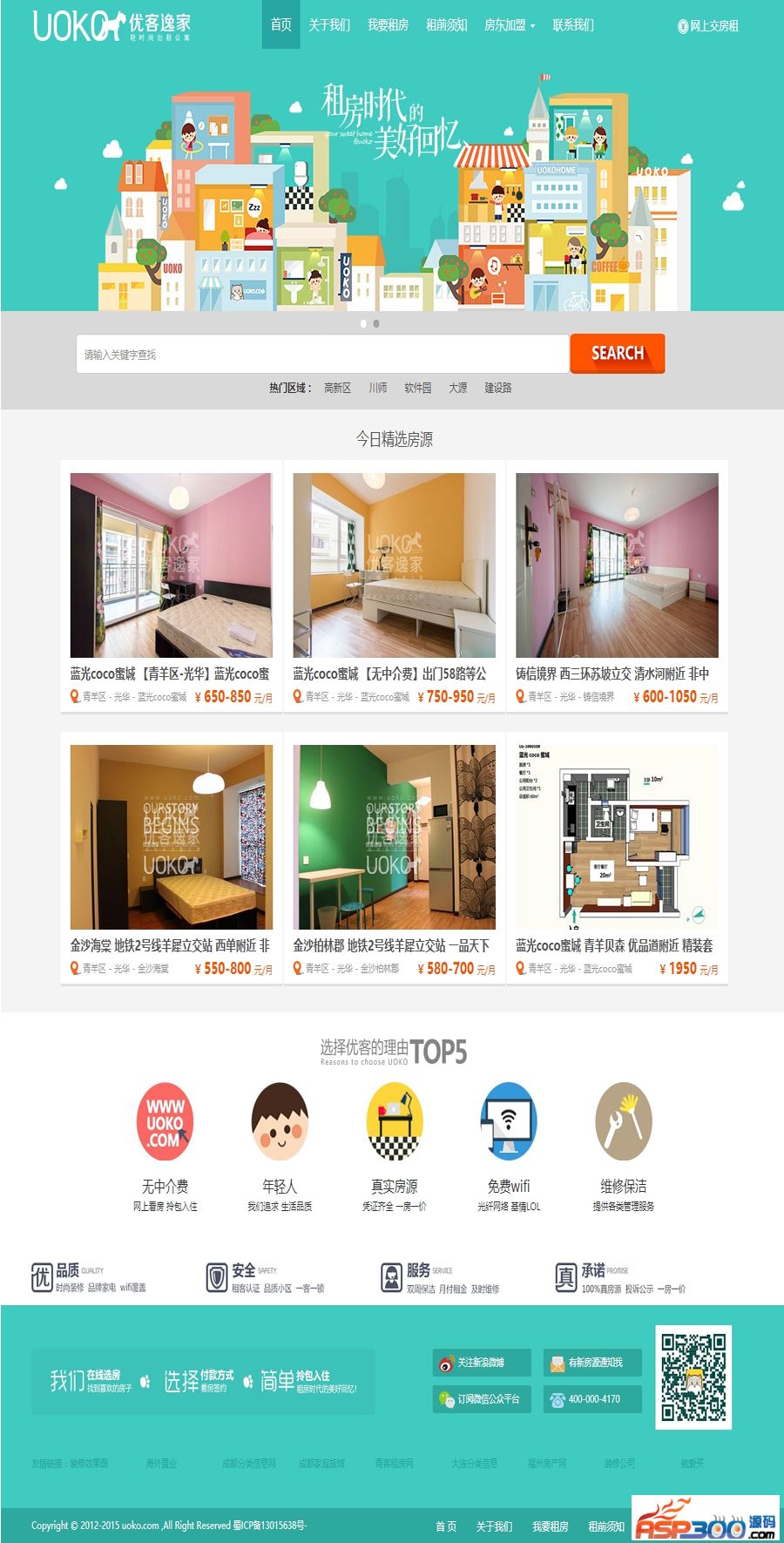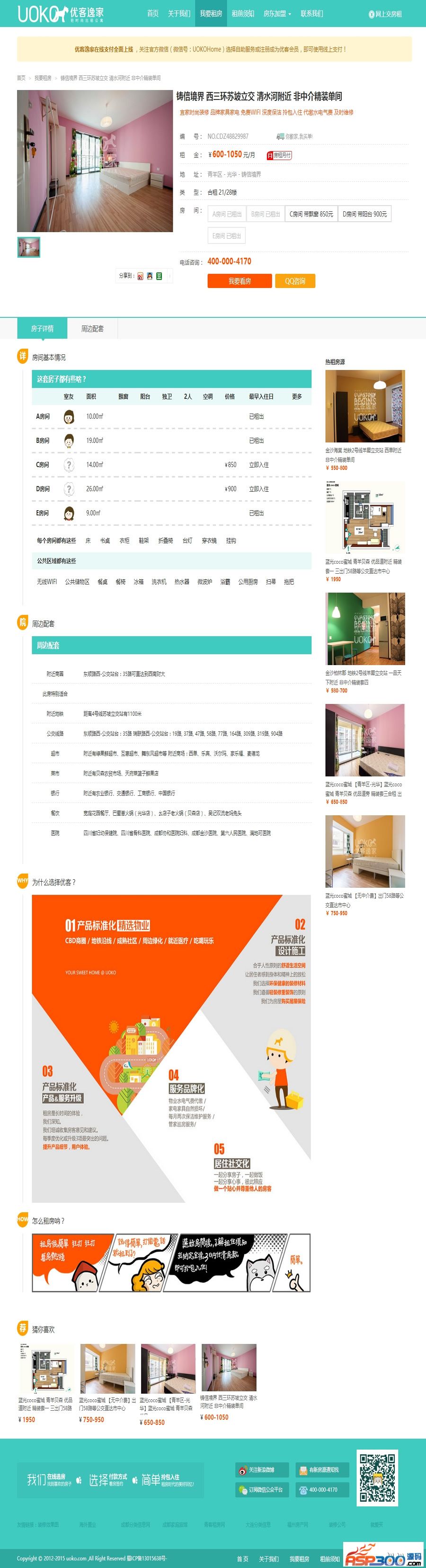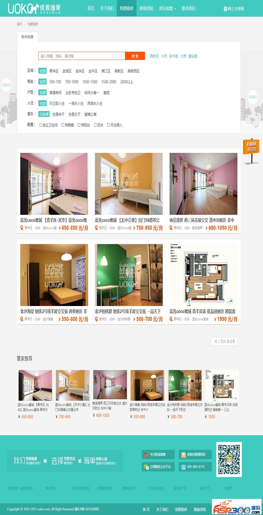 适用范围: 仿优客逸家租房网|单身公寓租赁网|房屋租赁网|合租房网站源码 漂亮大气