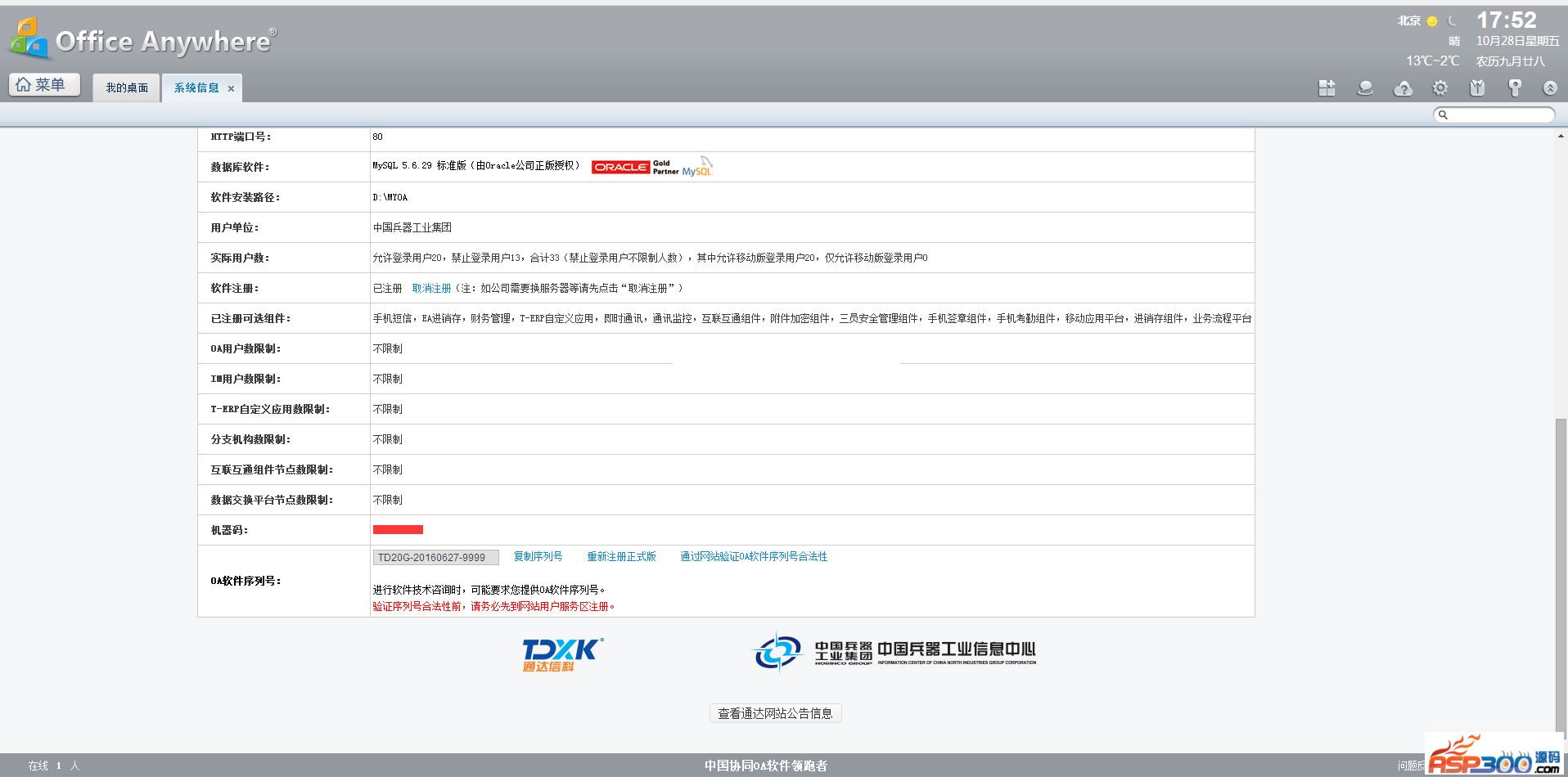 通达OA2016(9.5.160913)全能无限制版!功能强大的OA办公系统!!无任何限制,安装后显示注册正常。本系统不限客户端数量,手机APP、微信钉钉集成、电脑精灵、网页端多端使用,已注册数十项可使用组件,全功能使用!