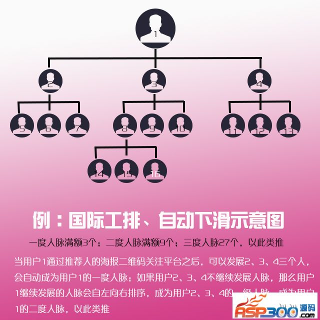 2、每当用户关注公众平台之后,只需要发展3个下级人脉,多的不用发展,这样推广起来非常简单容易