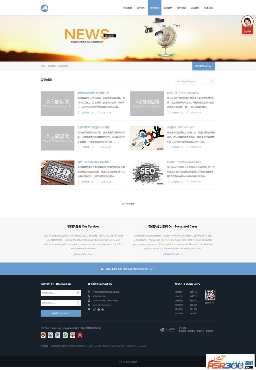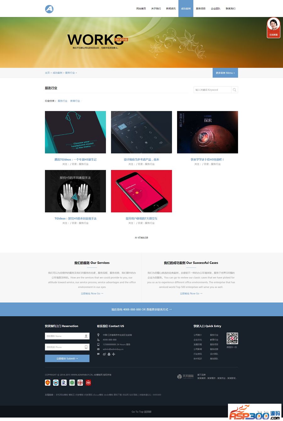 2、效果相当的炫酷,相当简洁大气高端,模板简单,全部已数据调用,只需后台修改栏目名称即可