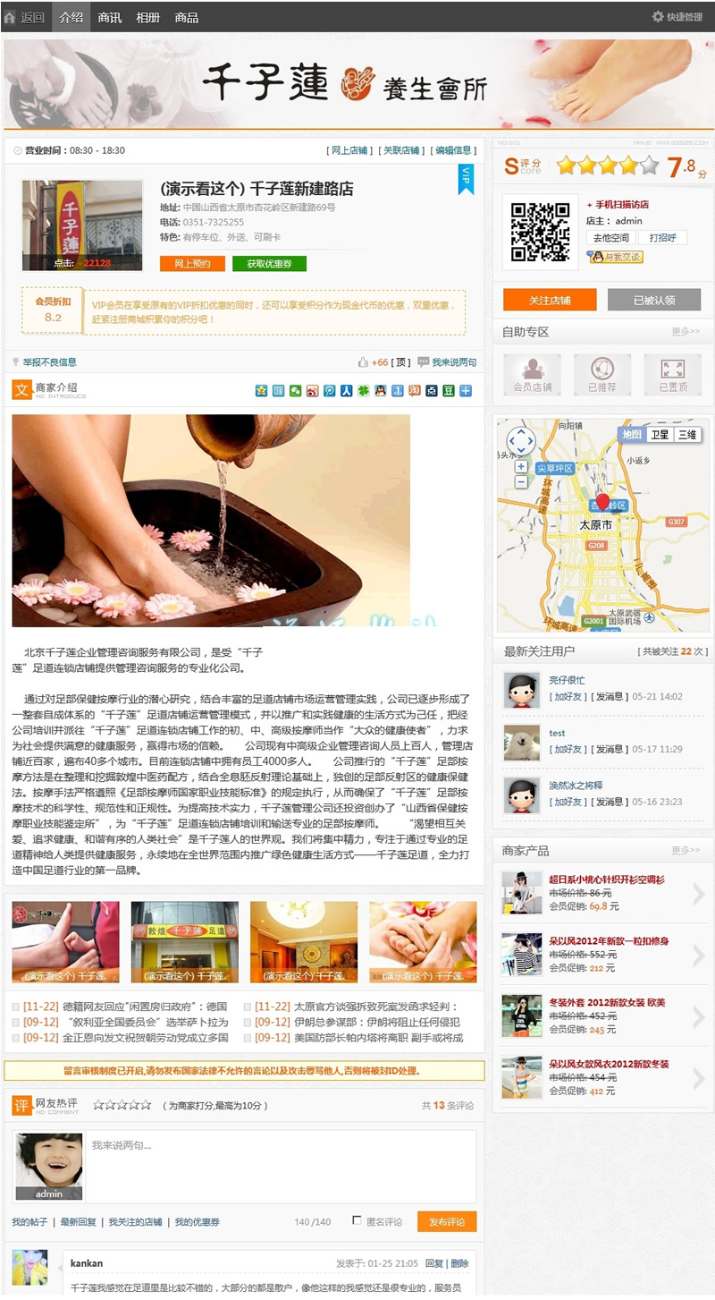 支持用户自定义商家特色、联系QQ、电话以及店铺地址,实体店地址项