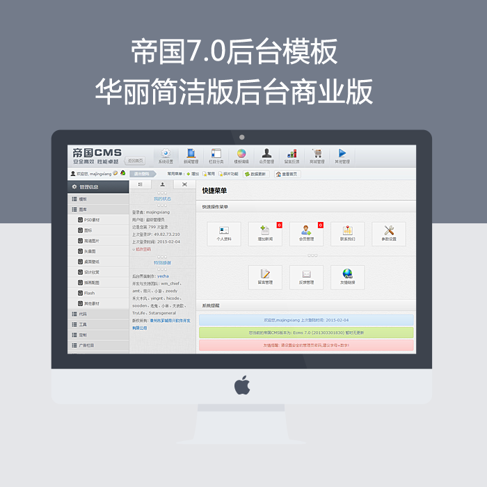 作者语:首先 , 谢谢您对我们的支持! 本后台模板属于用心制作 用时2个多月,修改了后台几百个php文件,全部手工修改,又经历了一个月的网站制作测试,最后整合出的版本!