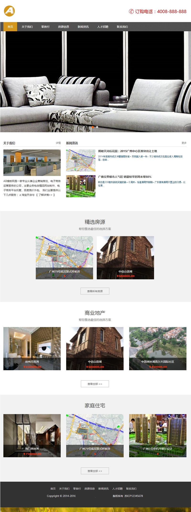(自适应手机版)房地产企业代理公司网站织响应式梦模板