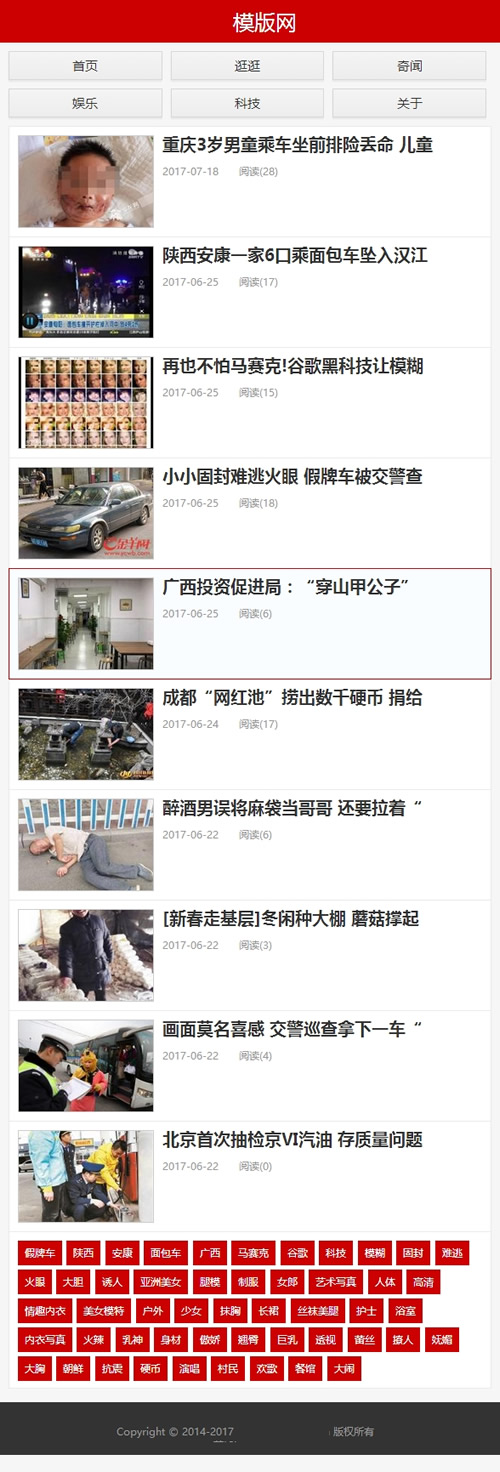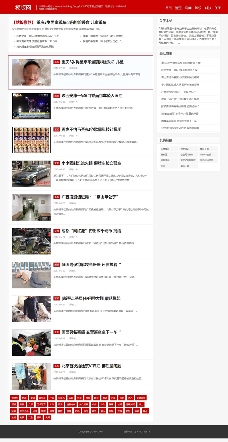 该模板是非常容易存活的,这样的网站很容易吸引访客点击,提升ip流量和pv是非常有利的,随便挂点联盟广告都能养活网站。