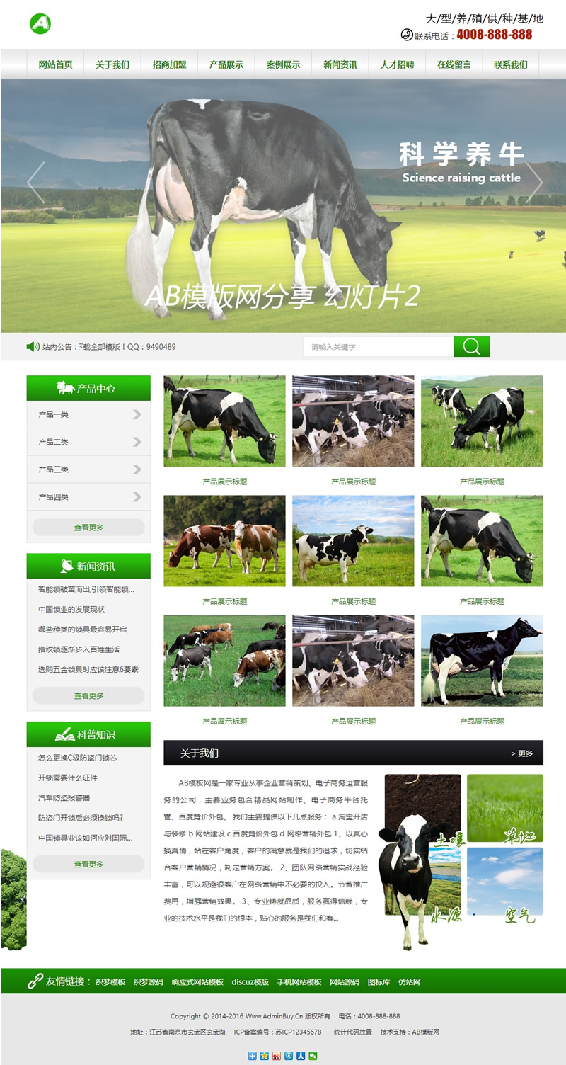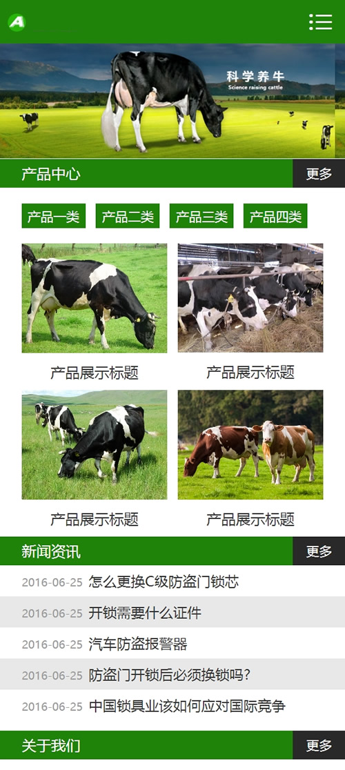 模板介绍:织梦最新内核开发的模板,该模板属于农林、牧业渔业类企业通用类企业使用,自带最新的手机移动端,同一个后台,数据即时同步,简单适用!原创设计、手工书写DIV+CSS,完美兼容IE7+、Firefox、Chrome、360浏览器等;主流浏览器;页面简洁简单,容易管理,DEDE内核都可以使用;附带测试数据!