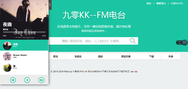 适用范围: 仿云上的日子 一款小巧的在音乐网站源码下载 九零KK FM电台音乐网站源码