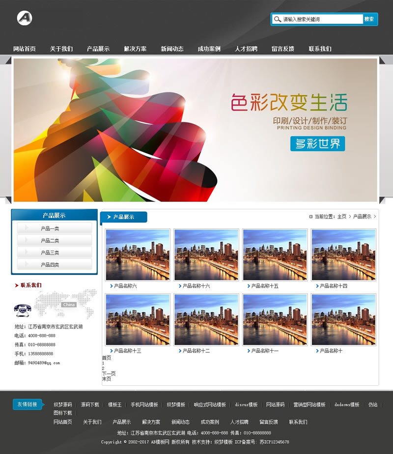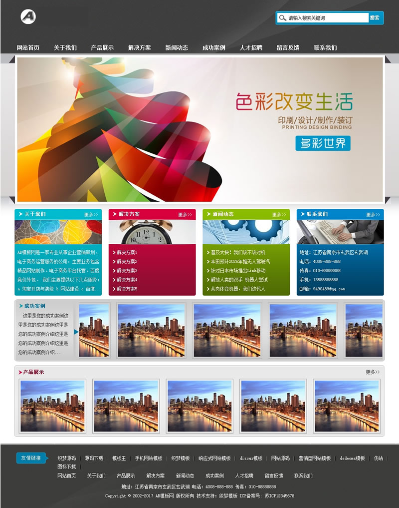 3、适用于打印印刷设备模板、图文机械网站源码;