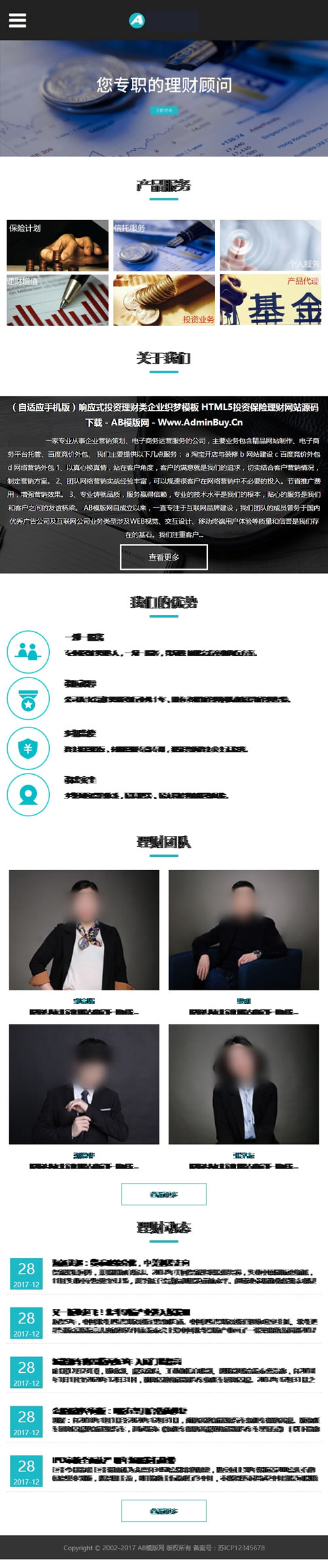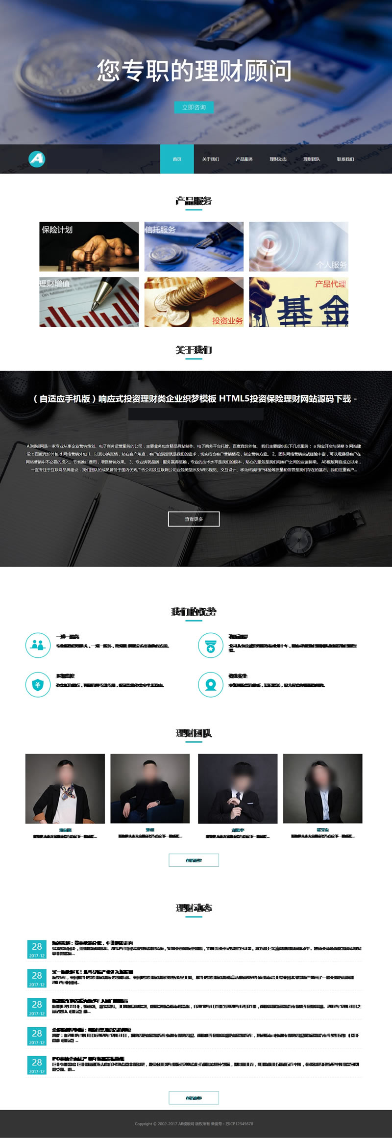(自适应手机版)响应式投资理财类企业织梦模板 HTML5投资保险理财网站源码下载