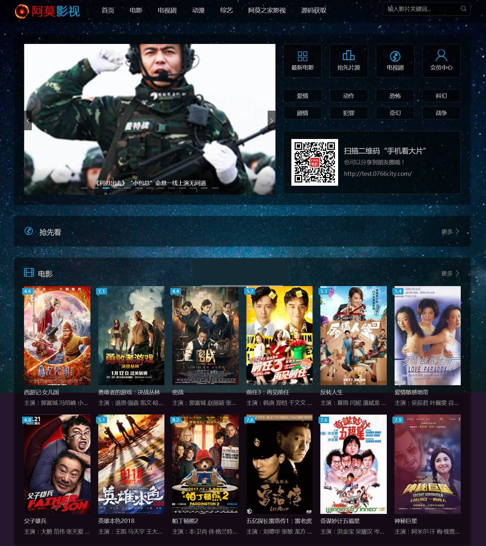 全自动影视采集系统阿莫影视系统-,懒人必备,增加会员+卡密系统+积分,对接支付宝,微信充值。可手动添加尝鲜影视资源