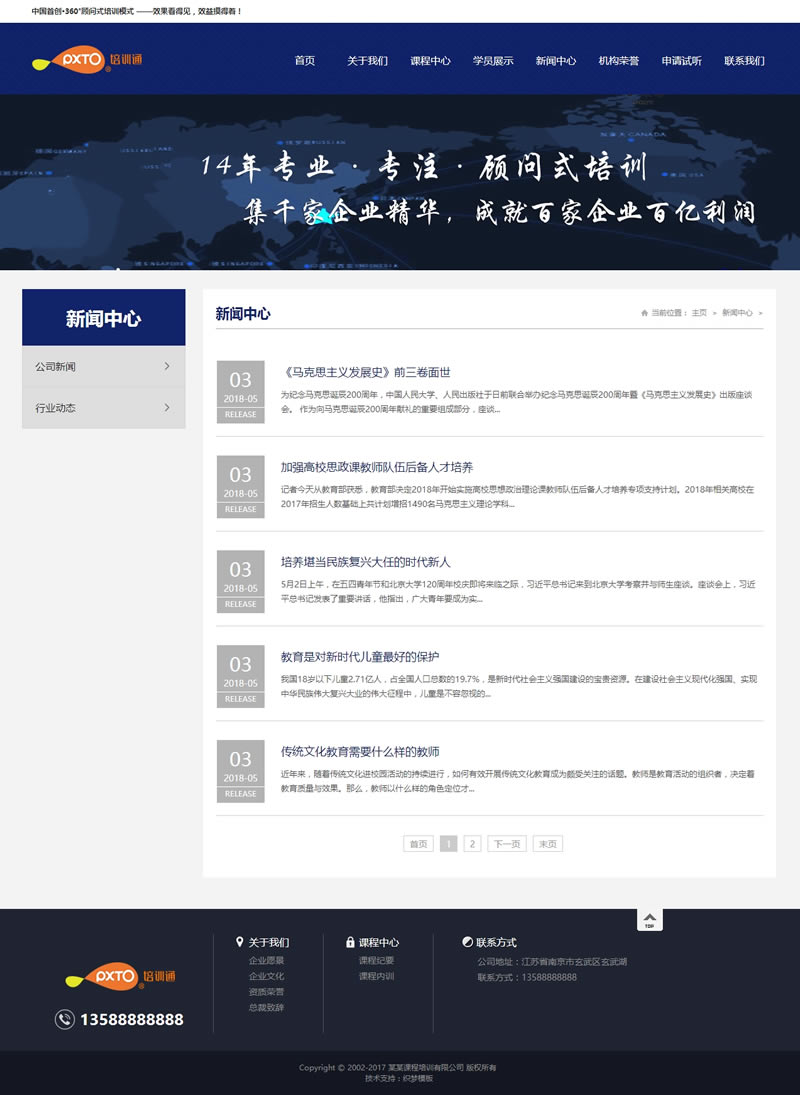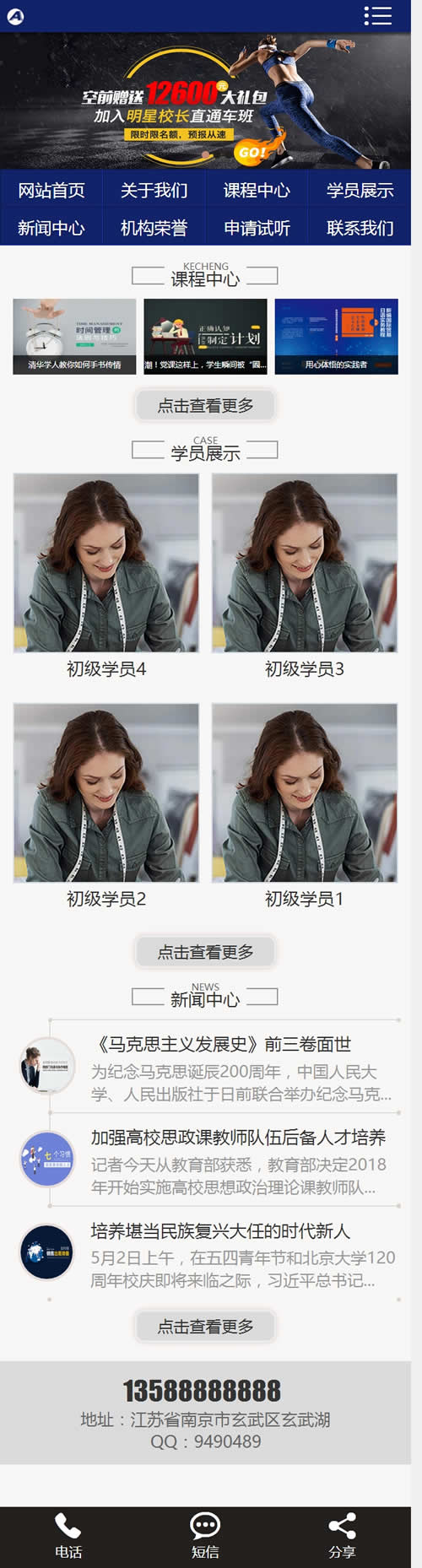(带手机版数据同步)营销管理商学院培训类网站织梦模板 蓝色培训机构网站源码下载