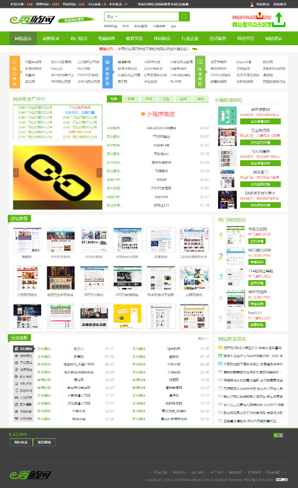最新仿《秀站网》绿色版分类目录网站整站源码,帝国CMS内核开发支持网址提交功能等
