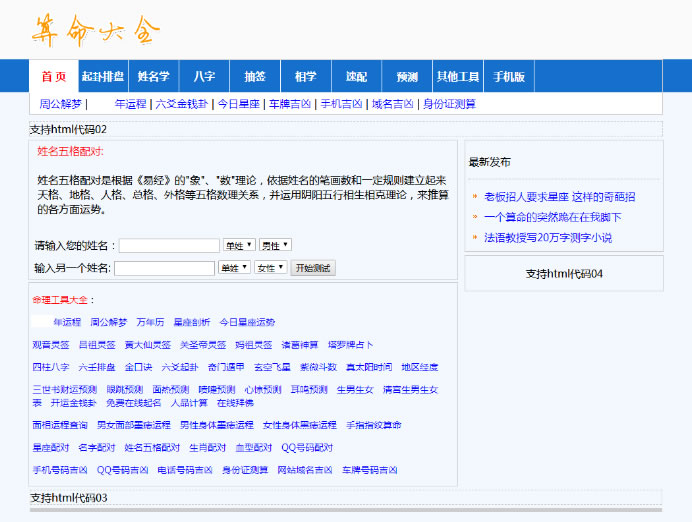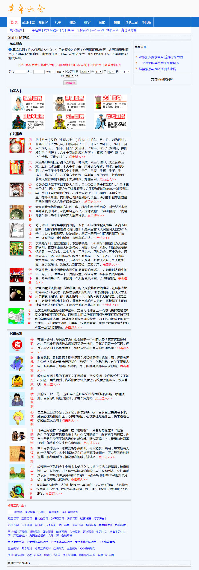 2018在线算命网站程序是一款娱乐型的网站源码,功能有:各种算命,网上起卦排盘,周公解梦,手机号码查吉凶,QQ号码吉凶测试等,多个功能,查询结果仅供娱乐。 安装说明: 见压缩包 下载地址 下载地址已转移到新版网站,请点击左上角-首页,在新版网站搜索此套源码的标题进行下载。