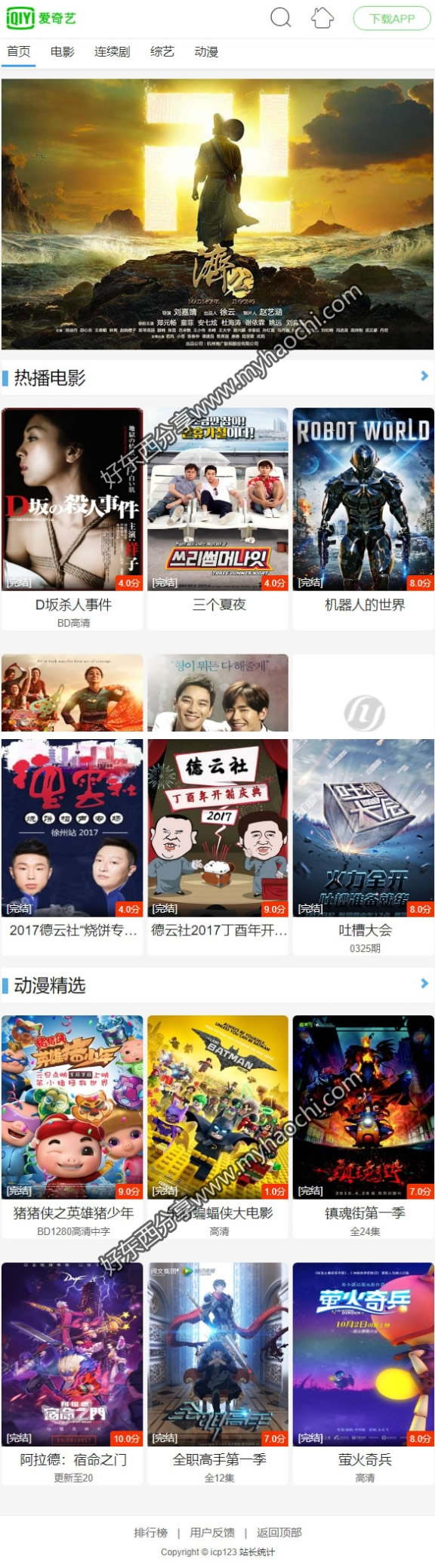 苹果cms电影站高仿爱奇艺带PC+手机端,全站打包,手机端自动切换
