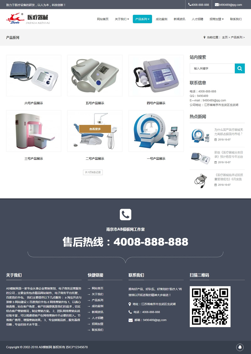 3、适用于医疗设备网站源码、医疗器械织梦模板;