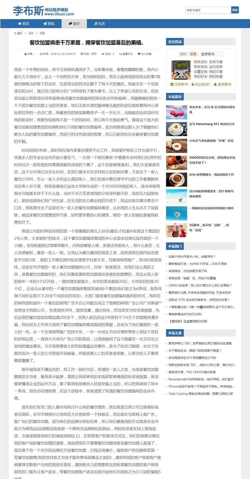 网站程序采用的是帝国CMS 7.5 UTF-8 为底层,手机上显示非常漂亮,请用手机查看演示站。程序模板为整站发货,只适合新开站,含10万条左右的文章内容,非常适合当采集站做联盟等用途! 也可以正规发展!安装说明:运行/e/install进行安装,安装完成后进入后台进行恢复数据,恢复完成后账户:admin 密码:admin888